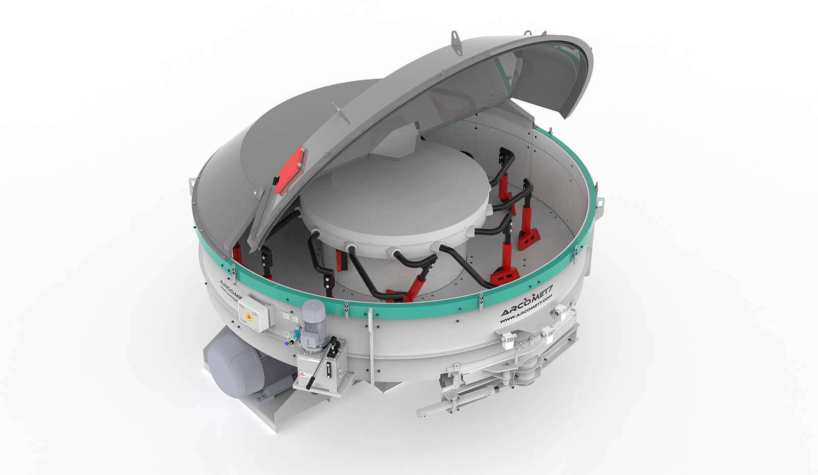 The mixing of materials is produced by turning the arms at high speed, moving the mixture from the centre to the rear walls. The arms have a special curve that allows a good mixing avoiding the possibility of breakage.