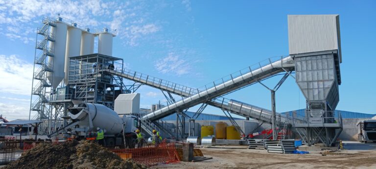 A few months ago, Arco Met7 S.L. completed a project for a concrete plant in the Porto area, Portugal, with a fully galvanized metal construction and a production capacity of 100-120 m³/h. We show you the result and the components of the plant. GENERAL VIEW OF THE CONCRETE PLANT / LOADING SYSTEM FOR THE HOPPER GROUP MDE-4500 Twin Shaft Mixer Group of 4 hoppers + 3 galvanized hoppers Central cabin model AC-62 Concrete mixer loading area Customized SCADA Concrete Plant – Equipment A-9020